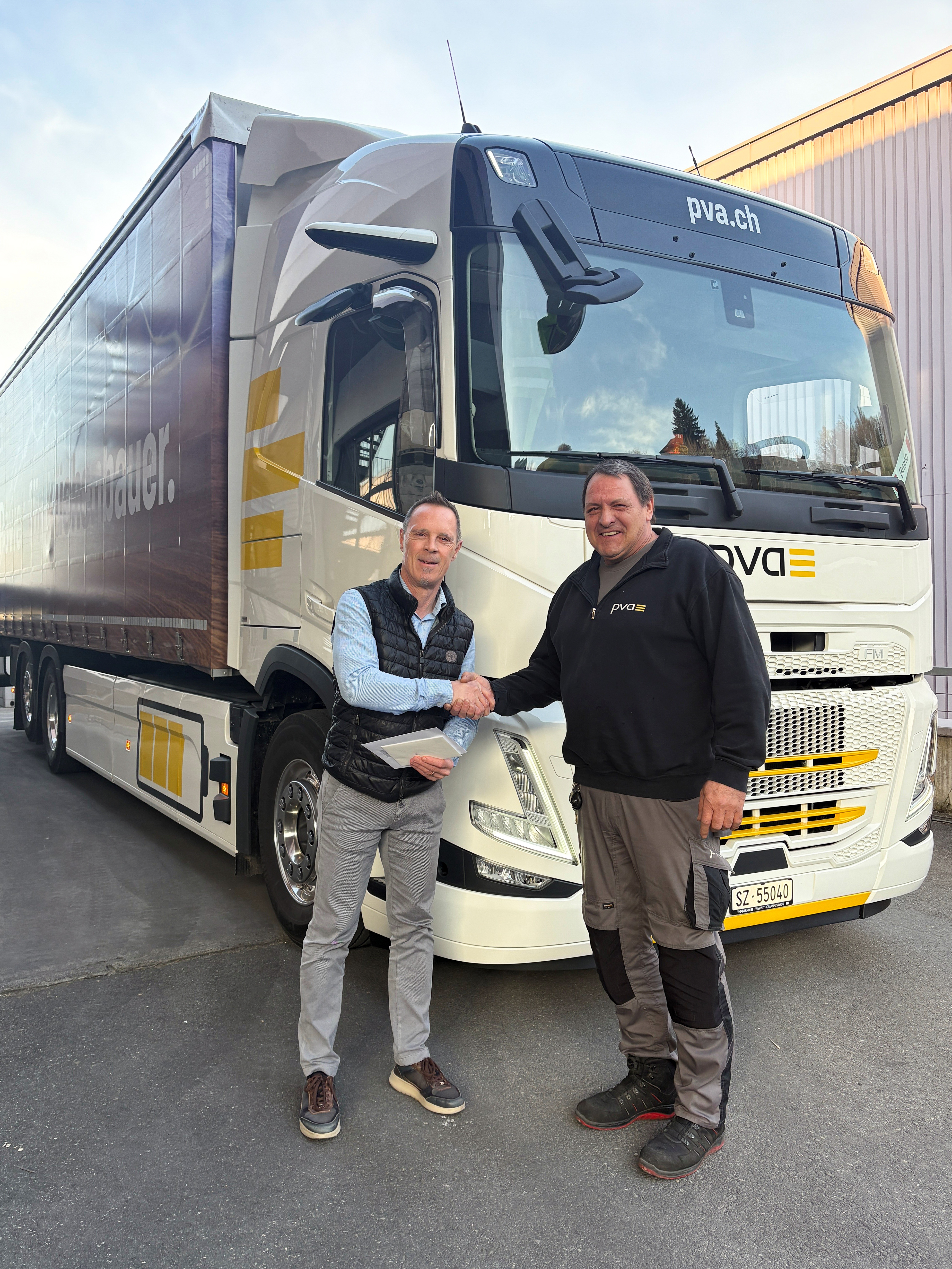 Seit fünf Jahren ist Bruno Betschart wieder im Team PVA – und neuerdings auf ganz leisen Reifen unterwegs: Als erster Chauffeur liefert er Kundenbestellungen mit unserem vollelektrischen LKW aus.⚡